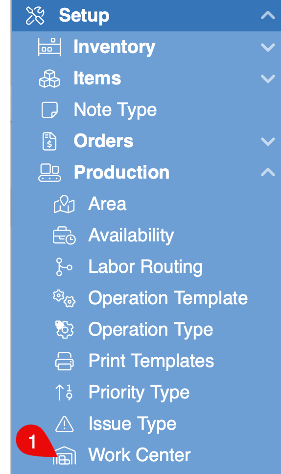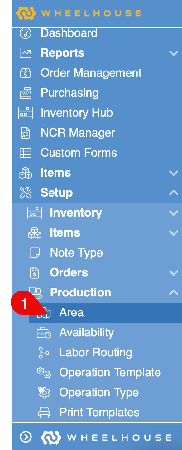 - Open Setup > Production > Area ( or Setup > Inventory > Area )